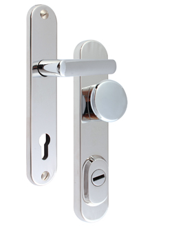 Sicherheitsbeschlag Rostex R1, Rund, Chrom Edelstahl, Griff - Kugel