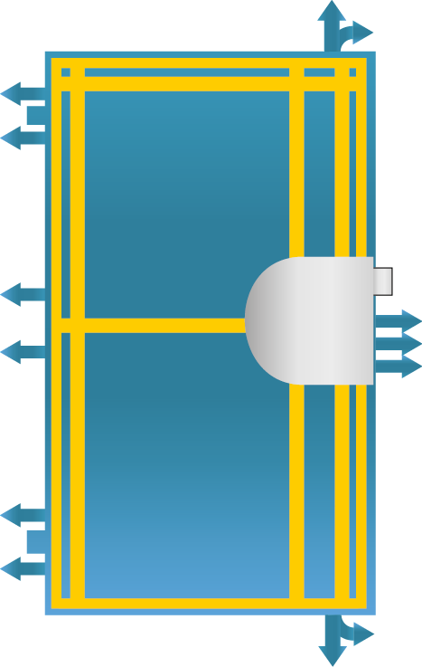 • Eine doppelte Dichtung entlang des gesamten Türumfangs schützt in den Wintermonaten vor dem Eindringen von kalter Luft und dem Entweichen von Wärme, in den Sommermonaten umgekehrt.