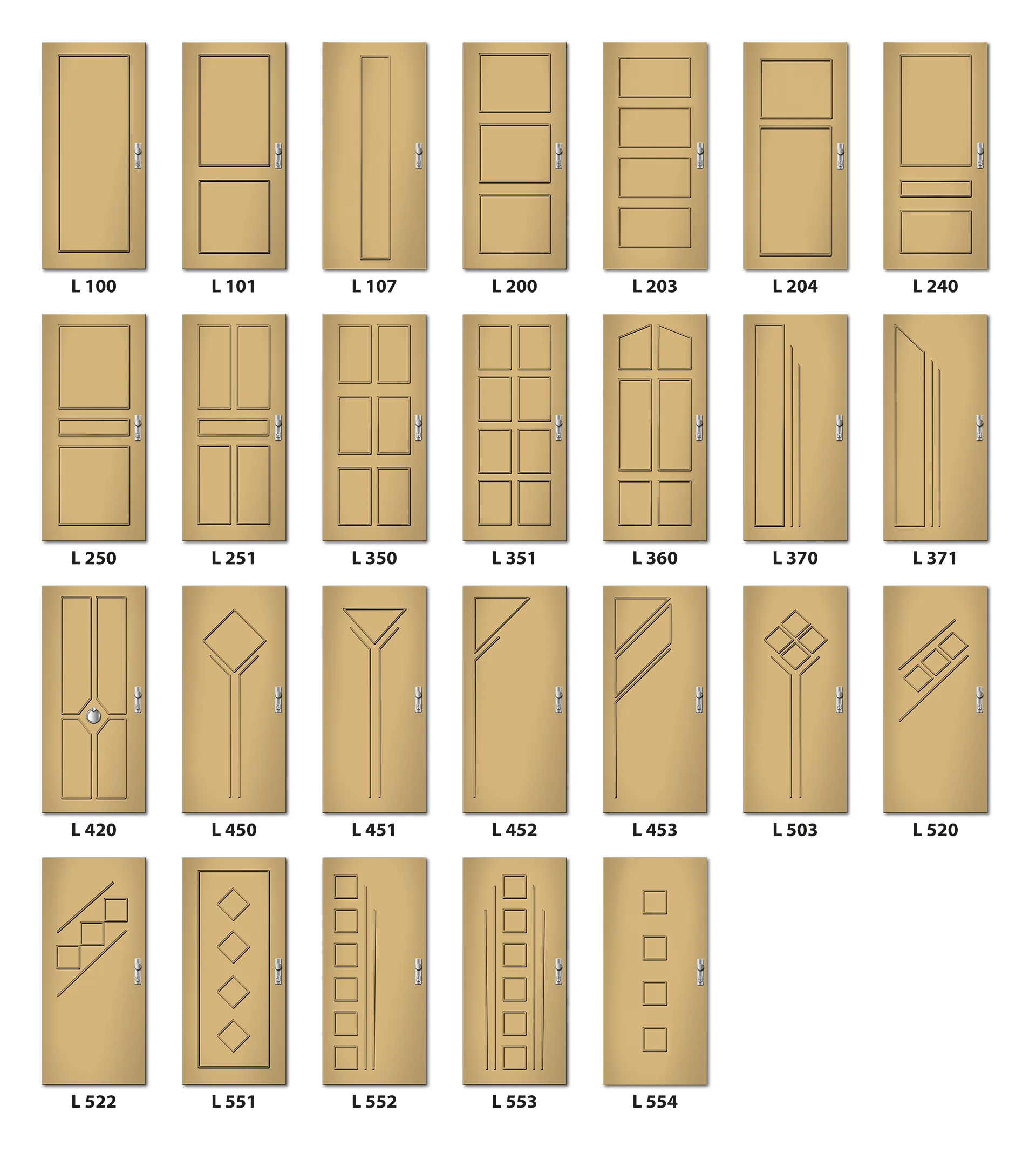 Entsteht durch das Aufkleben von Zierleisten auf die glatte Türfläche. Die Leisten heben sich plastisch von der Oberfläche ab.