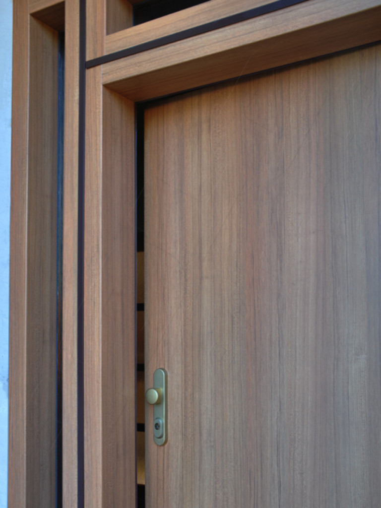 ADLO - Sicherheitstür LISBEO, glattes Design, Eingangstür in ein Arbeitszimmer, ADLO Türzarge mit Holzdekor