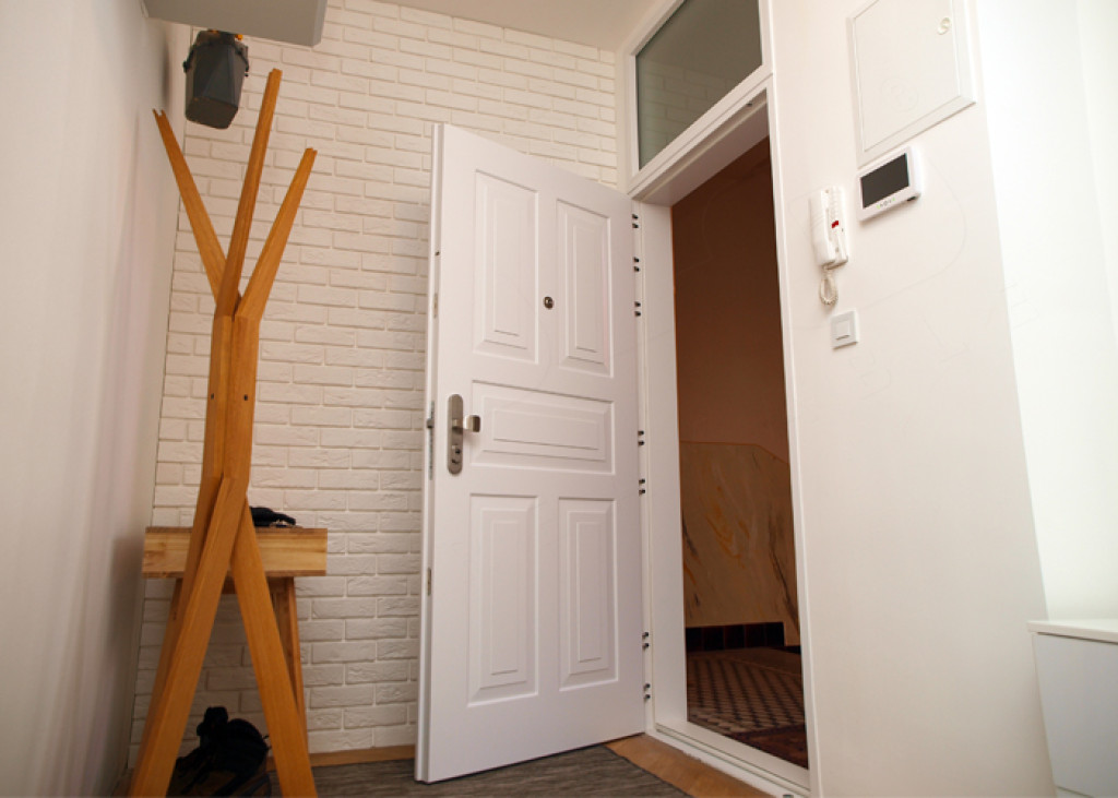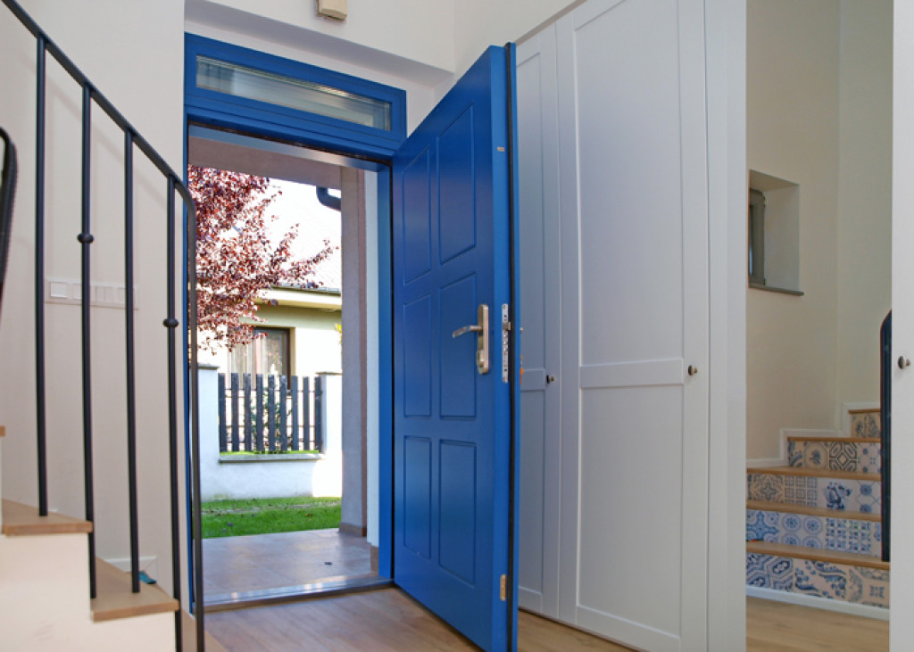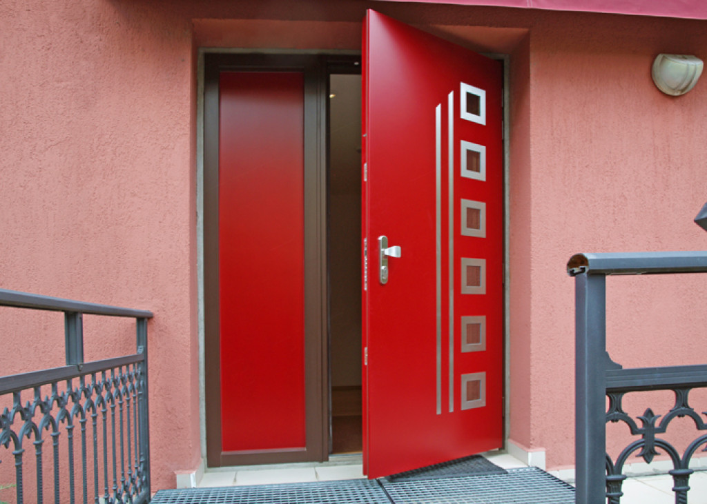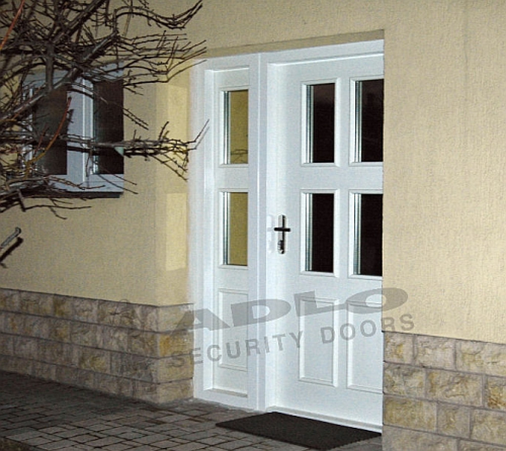 ADLO - Sicherheitstür ARDEN, Leistenausführung L-100, abgerundete Leisten, spritzlakiert RAL, Thermo-Tür und seitlicher Fixteil
