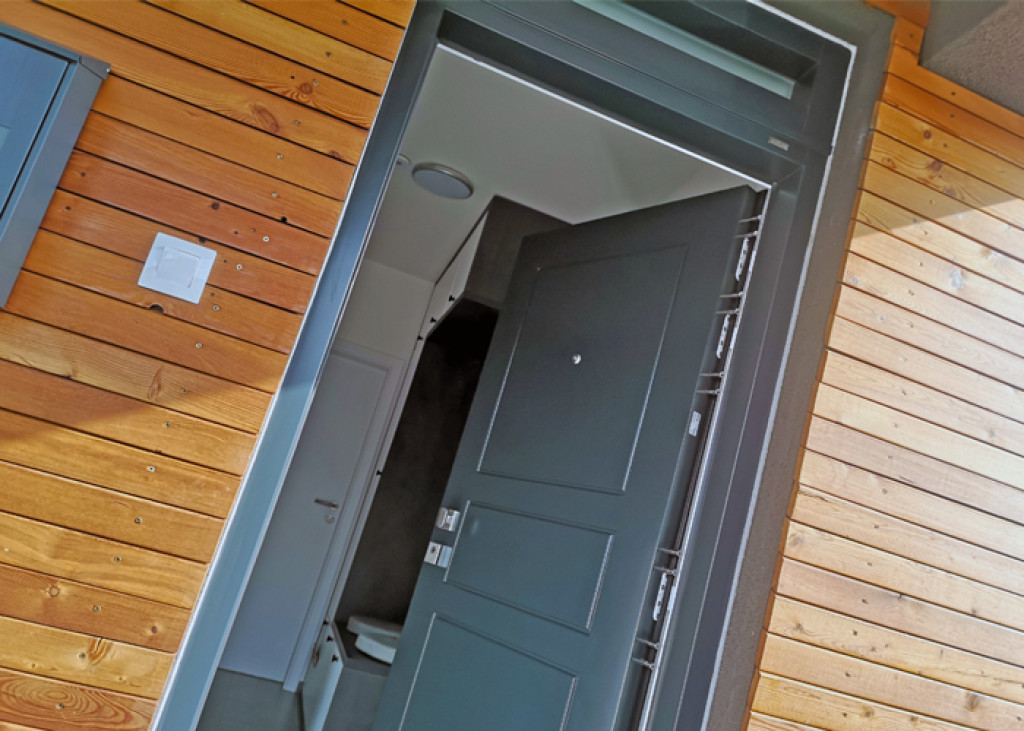 ADLO - Sicherheitstür TESIM mit Fixteilen, Oberfläche der Tür und der Türzarge RAL 7011 matt