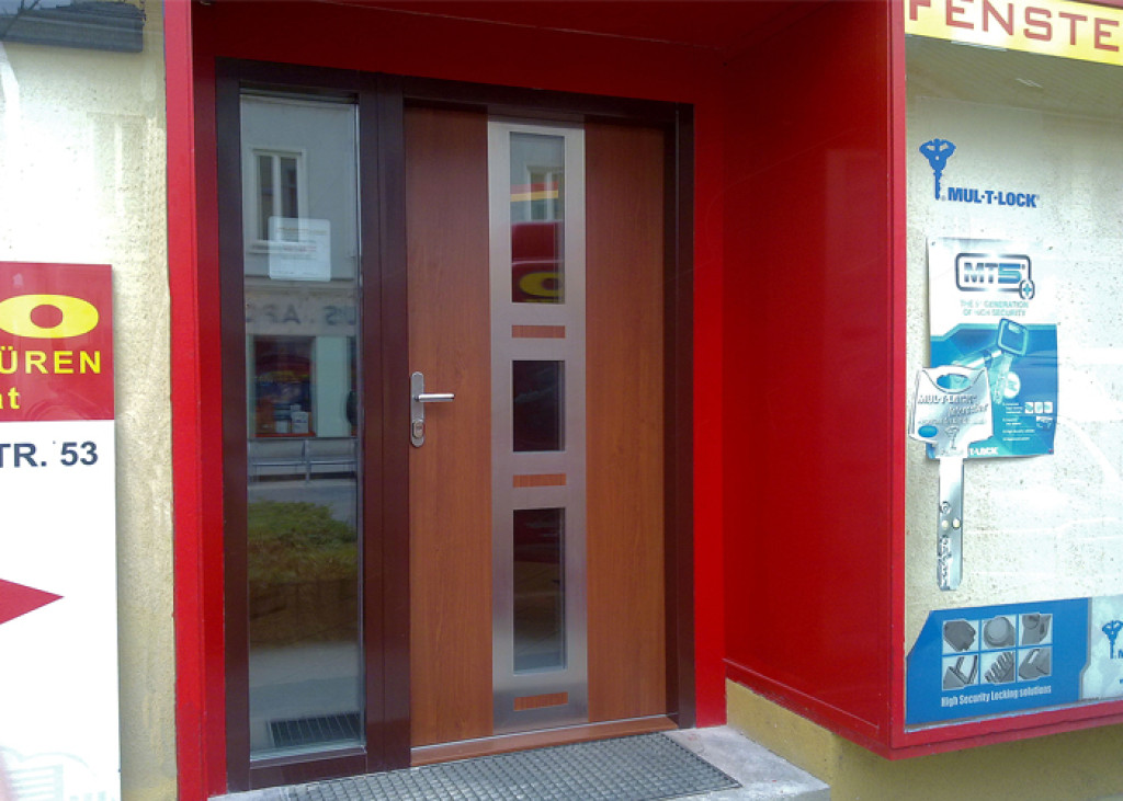 ADLO - Sicherheitstür ZENIT, NOBLESSE, Gloria 004, Thermo-Dreifachglas, gleiche Oberfläche der Tür und der Türzarge