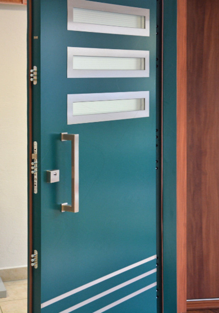 ADLO - Sicherheitstür ARDEN, NOBLESSE, Gloria 004, Thermo für den Außenbereich, Dreifach-Panzerglas, senkrechter Türgriff
