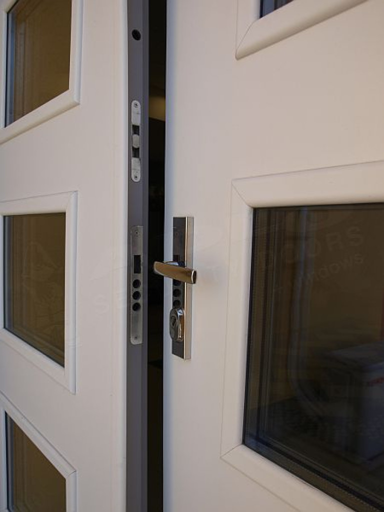 ADLO - Thermo-Sicherheitsdoppelflügeltür KASIM, Thermo-Dreifachglas P522, Breite 147cm, Folienbeklebung der Türzarge