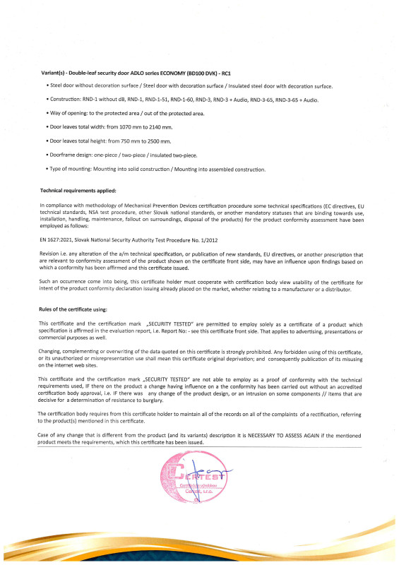 ADLO Security doors ECONOMY RC1 - LISBEO