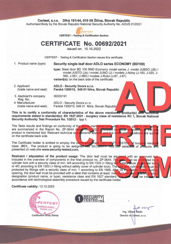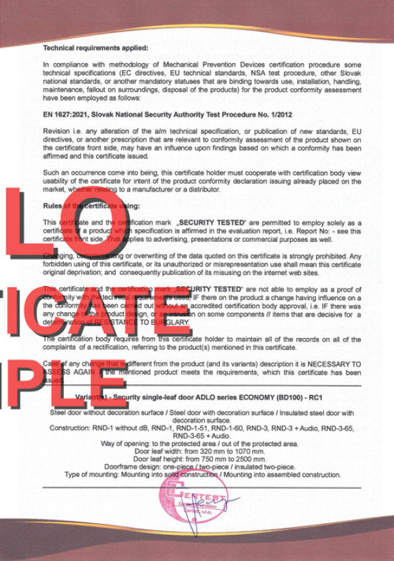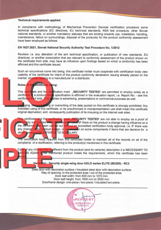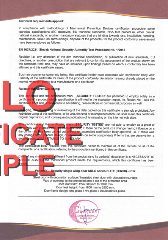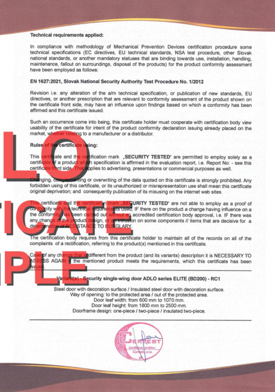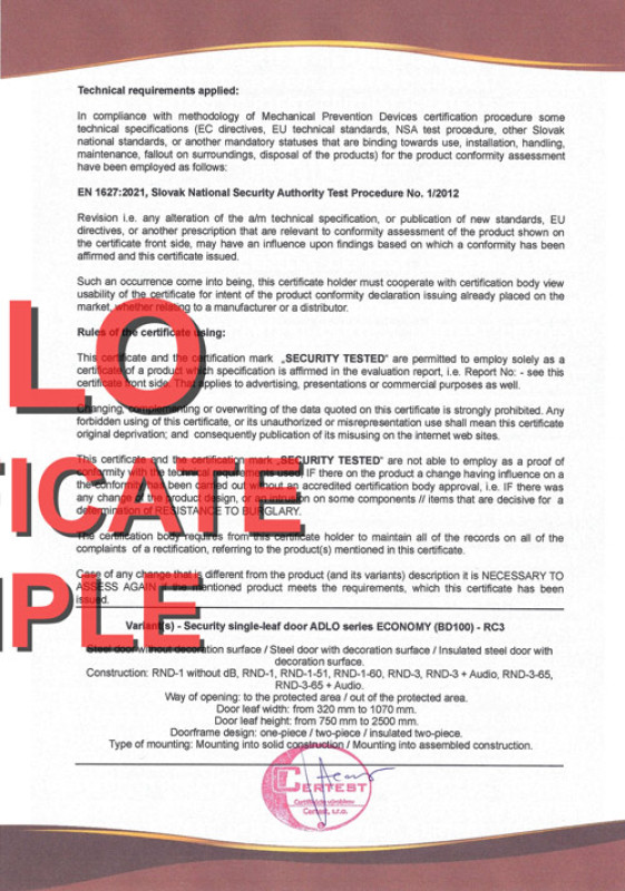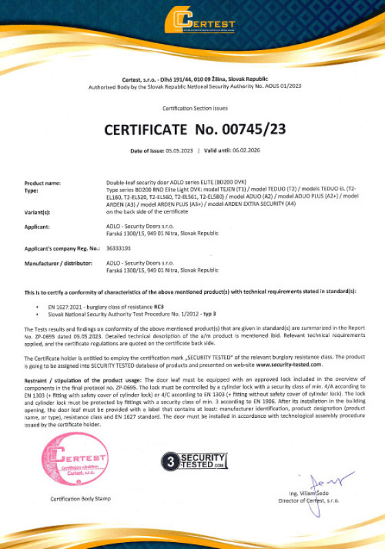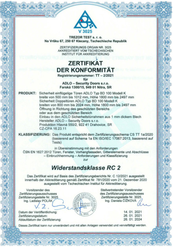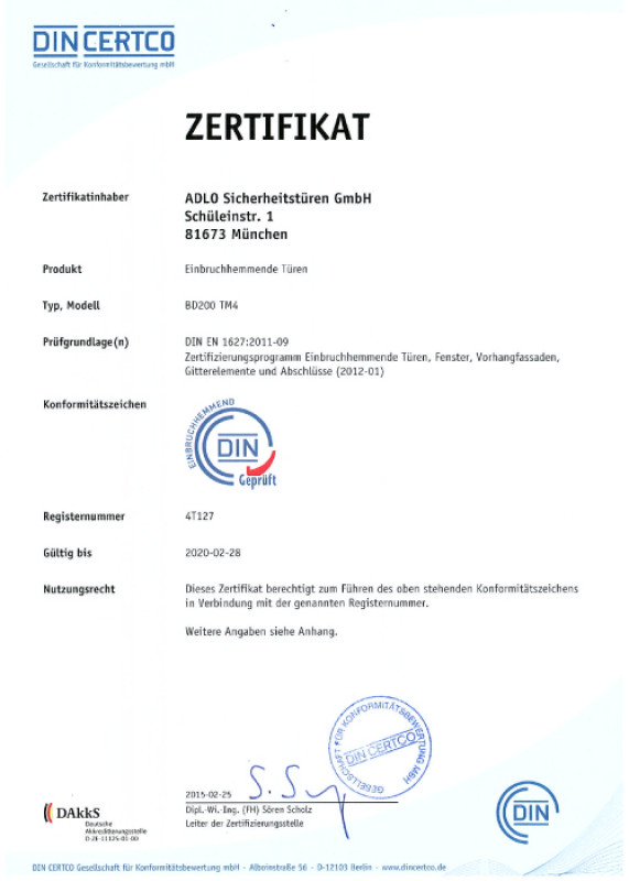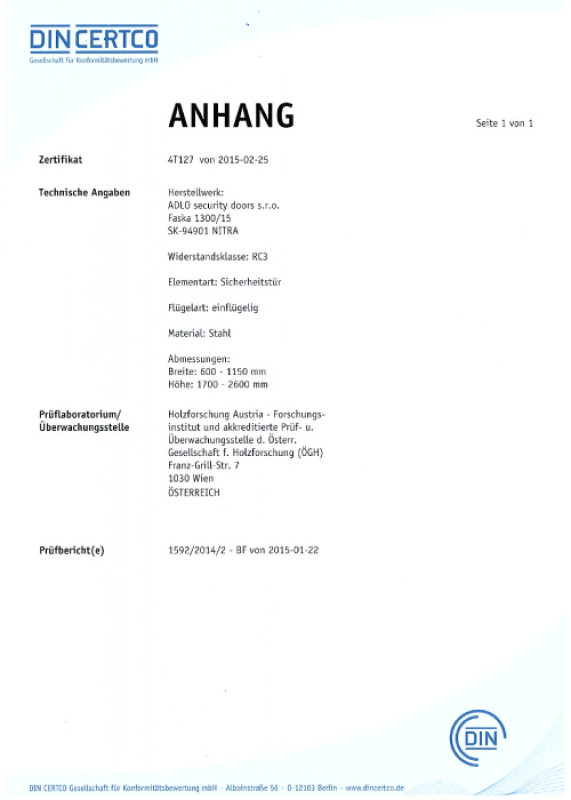 ADLO Sicherheitstüren TEJEN M4, DIN EN 1627, RC3, anhang